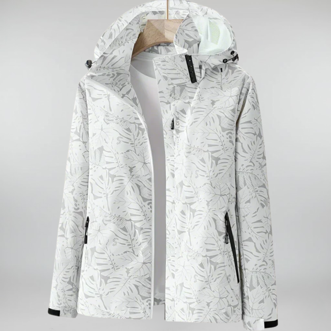 Ingrid™ ist eine elegante Outdoor-Jacke mit einzigartigem Blätterprint – wasserdicht, atmungsaktiv und leicht, entwickelt für maximalen Komfort.